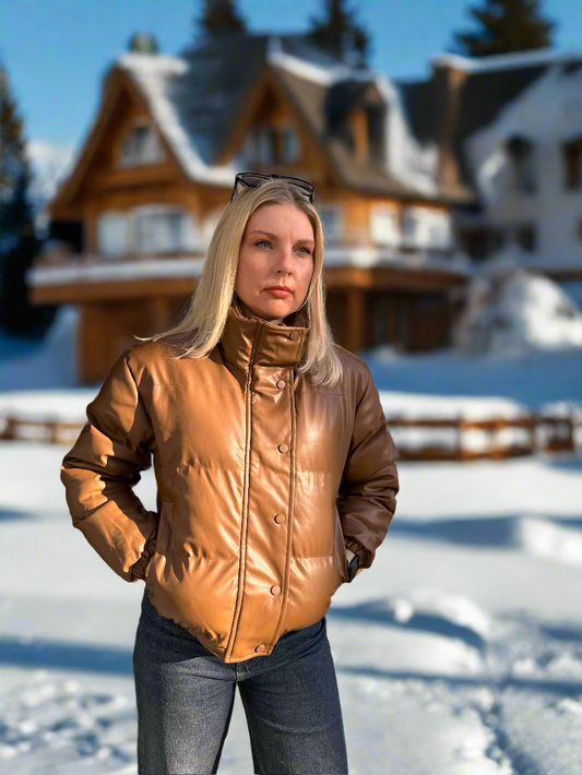 Women's Brown Faux Leather Jacket